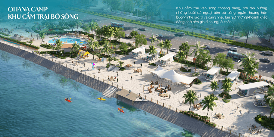 TỔ HỢP CẢNH QUAN BỜ SÔNG ALOHABAY có chiều dài bờ sông gần 2km hứa hẹn sẽ là nơi CHILL nhất của dự án