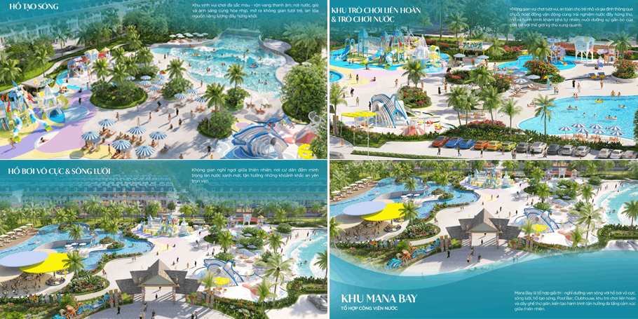 Tổ hợp công viên nước MANA BAY có hồ tạo sóng và các trò chơi nước sẽ là nơi vui chơi ưa thích nhất của các bé.