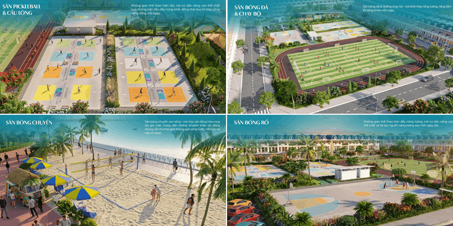 Trung tâm thể dục thể thao ACTIVE HUB có sân BÓNG CHUYỀN, sân PICKLEBALL & CẦU LÔNG, sân BÓNG RỔ, sân BÓNG ĐÁ VÀ CHẠY BỘ.
