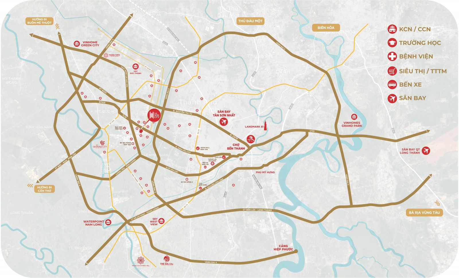 TÍNH THANH KHOẢN CAO, SỨC BẬT VỀ GIÁ MẠNH. Dự án The Win City tọa lạc ngay trung tâm thủ phủ công nghiệp (có hơn 39 cụm công nghiệp lớn bao quanh dự án), vị trí mặt tiền Tỉnh Lộ 10 (đường Trần Văn Giàu nối dài) kết nối HCM trong 5 phút. Căn hộ The Win City cách nút giao Vành Đai 3 khoảng 5km dễ dàng di chuyển đến các tỉnh lân cận